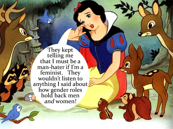 Snow White is upset about the prevailing stereotype/myth of feminism