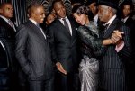 [Images: Several photos of a Vanity Fair photoshoot of actress Zoe Saldana, a thin Black Latina, wearing vintage, period 1920’s clothing, surrounded by lots of other Black people who are wearing the same.]