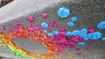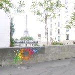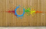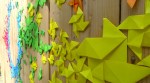 French artist Mademoiselle Maurice who creates stunning geometric figures on urban surfaces using rainbows of folded origami figures. via
