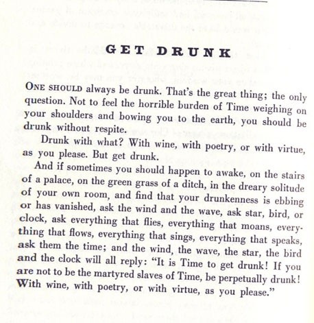 With wine, with poetry, or with virtue, as you please. But get drunk.