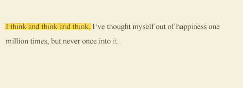 I think and think and think, I’ve thought myself out of happiness one million times, but never once into it.