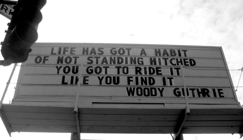 “Life has got a habit of not standing hitched you got to ride it like you find it.” Woody Guthrie.