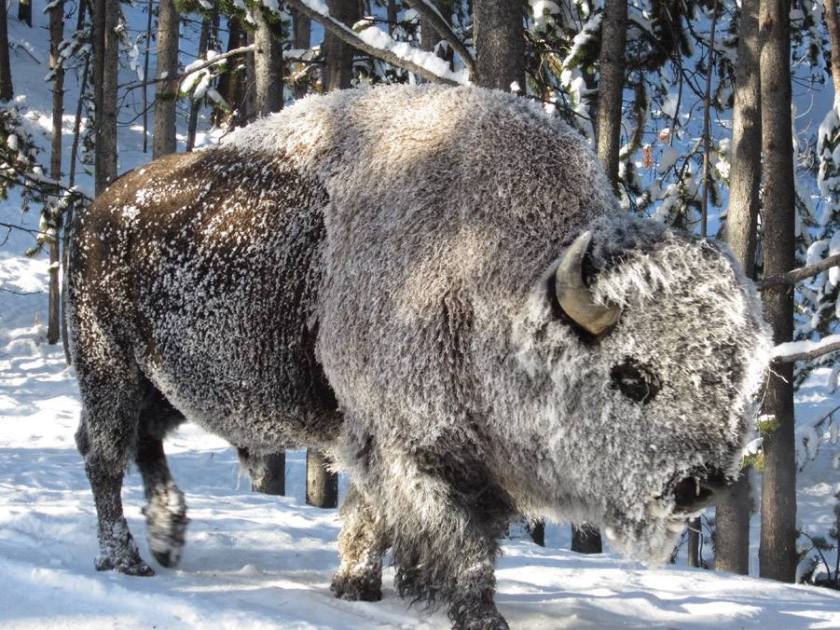 When temperatures Yellowstone National Park dropped below freezing last week, this bison woke up with a frost blanket. The bison’s heavy fur is perfectly adapted to winter conditions.