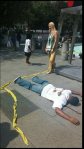 One woman even stepped over the body to get her picture. But as luck would have it the wind blew the caution tape and it got tangle around her foot. She had to stop and take the tape off. She still took her photo.