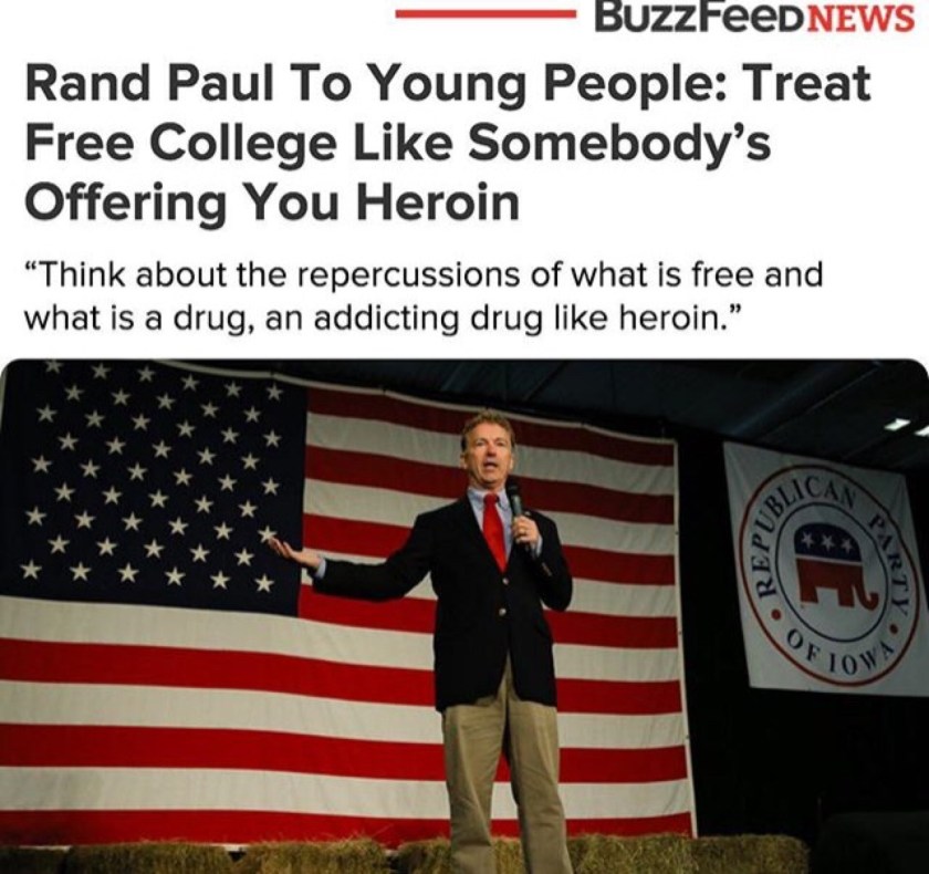 ….so is he saying free college is bad or free heroin is good…