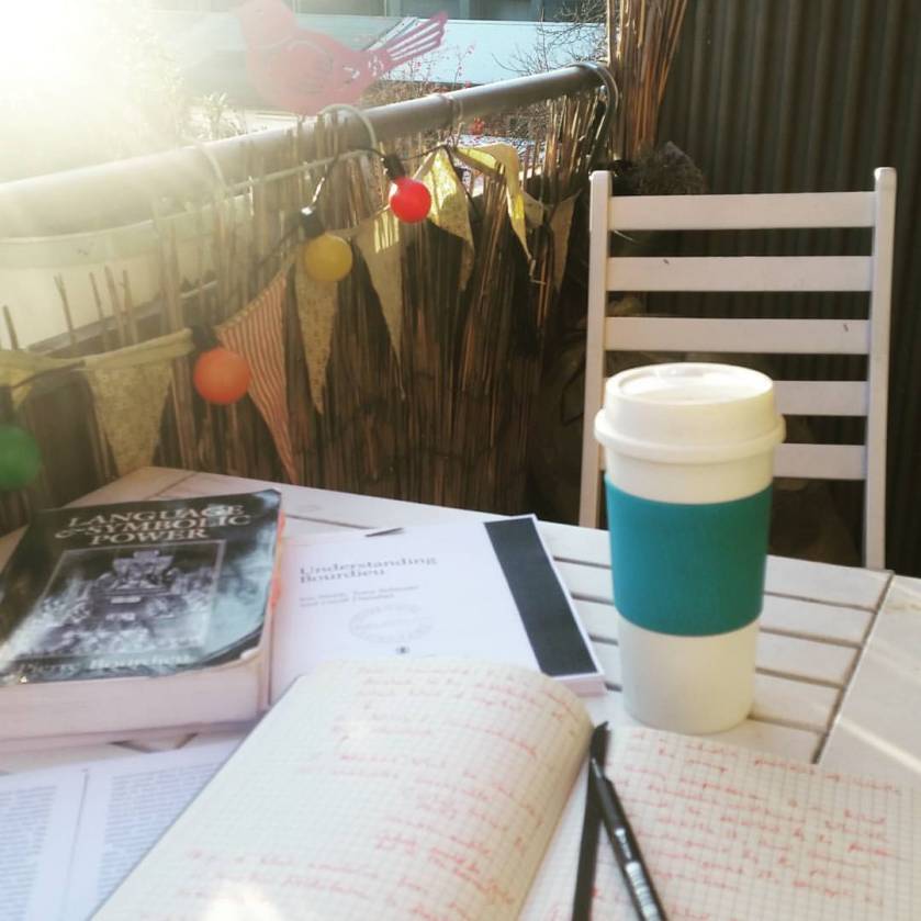 Thanks to the unusually warm weather in Southern Germany at the moment, I was able to study on my balcony this afternoon – possibly for the last time, as my final exam for my M.A. in North American Cultural Studies is next week.