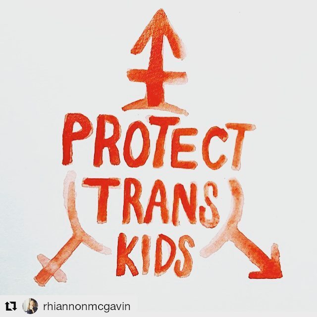 The Trump administration reversed go protections for Trans students put in place by Obama. It’s not just about peeing in peace, but about living and learning safely. Trans kids deserve to pursue happiness, too. (image by @hunterschafer / via @rhiannonmcgavin)